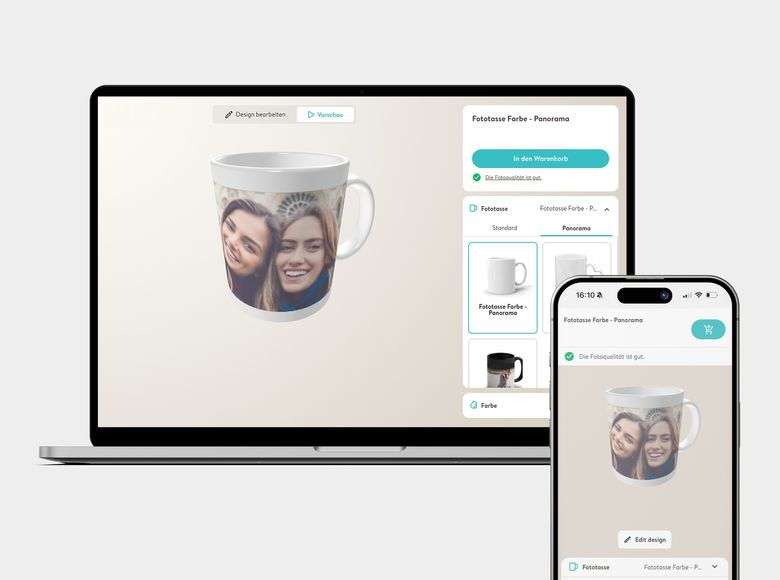 During our custom mug printing process your photos are embedded into the ceramic through a process known as sublimation that uses heat and special top-quality inks. Imagine a big oven – essentially, your photos are baked into your personalised mugs so they won't come off.
