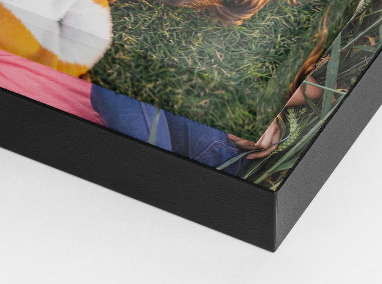 - Choose your material: Will you go for a minimal and modern acrylic photo block, or natural and rustic wooden photo blocks? If you opt for a photo block of wood, choose from black or white colour for your edges.