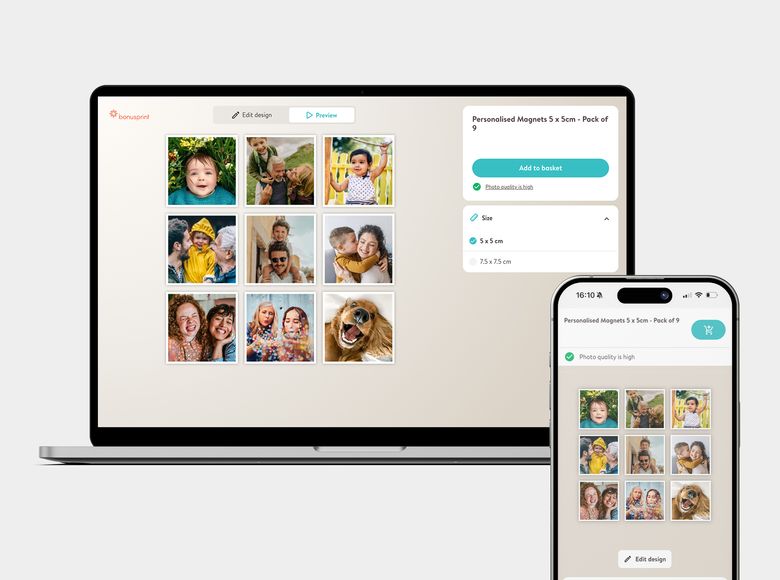 Looking for a small but meaningful gift? Our photo magnets are just the thing. Perfect for any occasion, they make lovely presents for friends, family, or colleagues. Design a special set of kitchen magnets as a gift for your wedding guests or showcase photos of your new baby to delight the grandparents with a beautiful set of photo fridge magnets. From little birthday surprises to stocking fillers – fridge magnet photos are fun, affordable presents for any event.